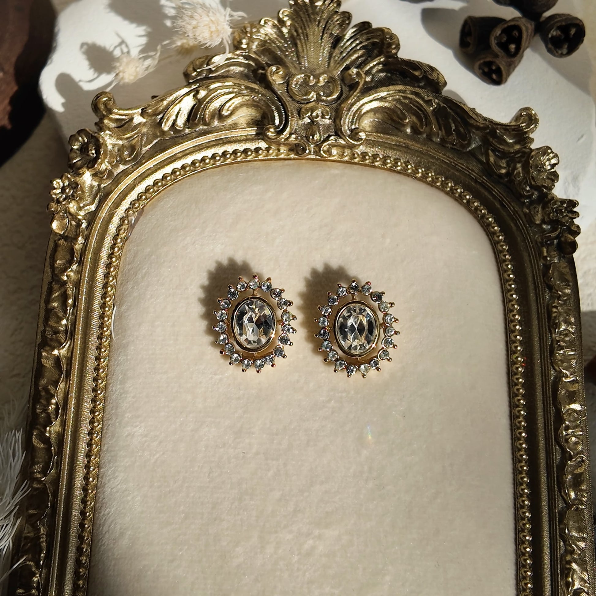 She is the belle of the ball, the one who catches every eye as she glides through the room. This vintage Trifari earring is a masterpiece of radiant design, a brilliant sunburst of crystal and gold that demands to be seen.