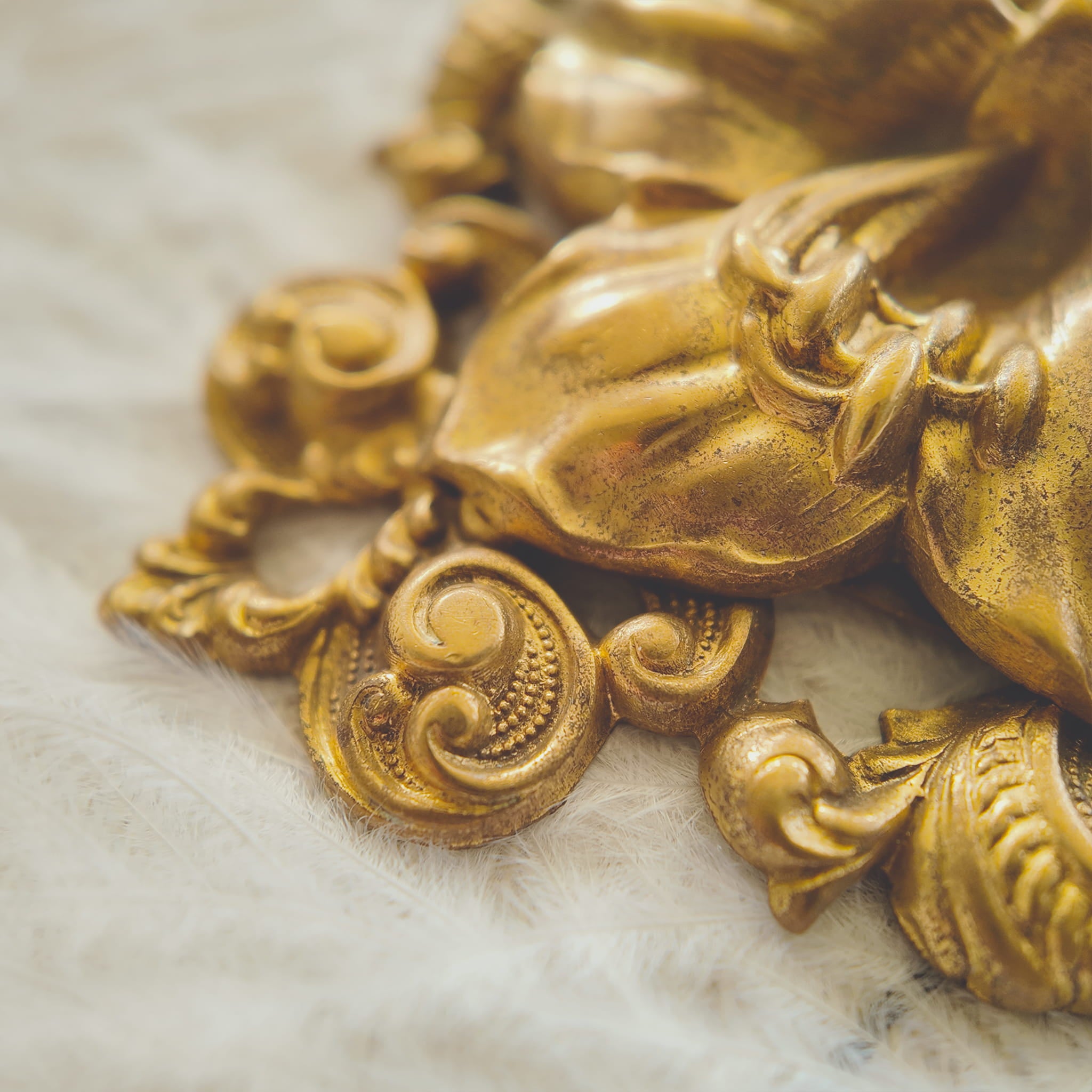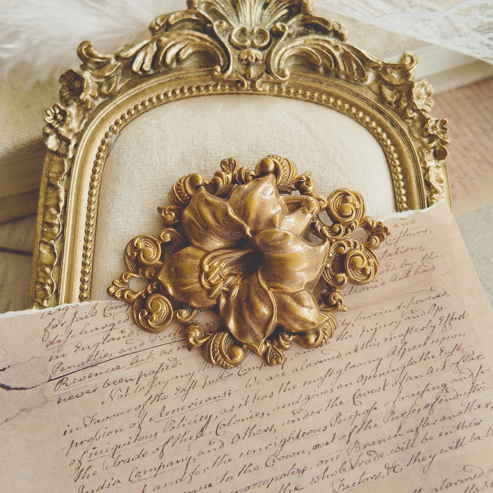 Sculpted from rich, pure copper, this large brooch is a masterclass in textural relief and design fusion. It seamlessly marries the opulent, symmetrical scrollwork of the Baroque era with the fluid, organic lines and classic floral elements of Art Nouveau. The result is a breathtaking, three-dimensional bloom, its intricate details rising boldly from the surface, catching every play of light.
