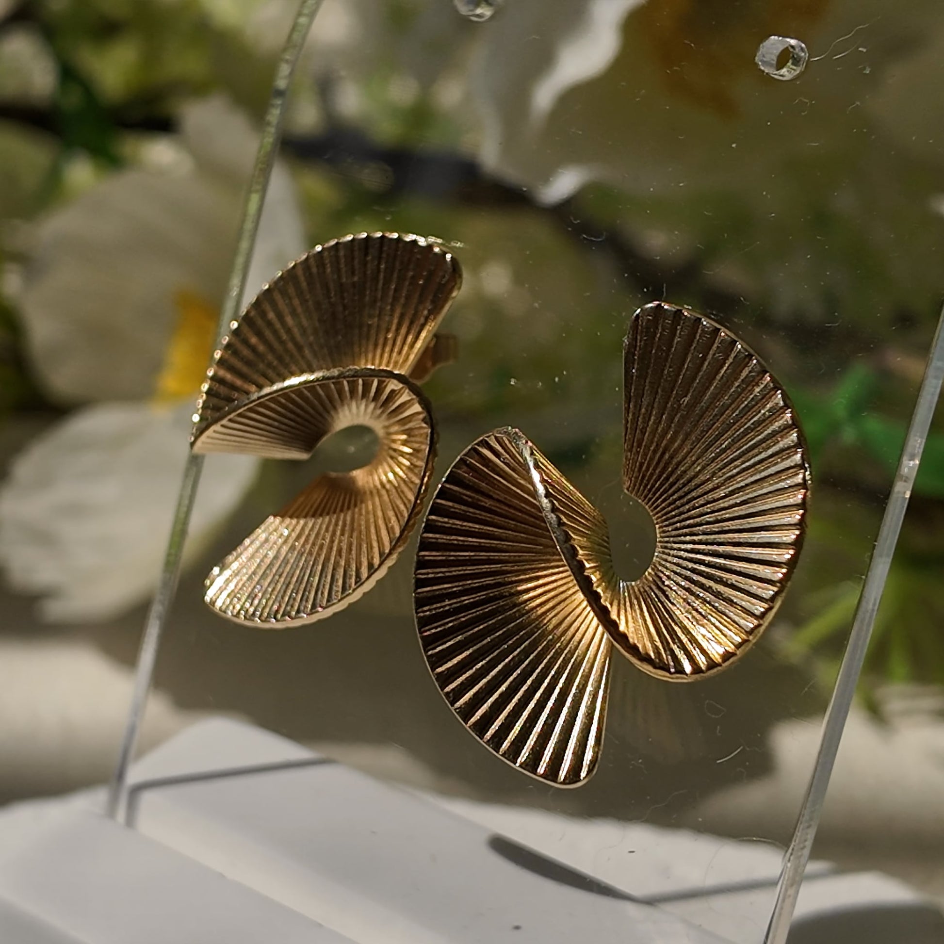 PLEASE READ VERY CAREFULLY: This pair has a powerful presence and a lot of authentic vintage character. It shows significant and visible signs of wear. There are numerous fine scratches on the surface, and one earring has a small spot of plate loss within the spiral groove, which is noticeable upon close inspection.