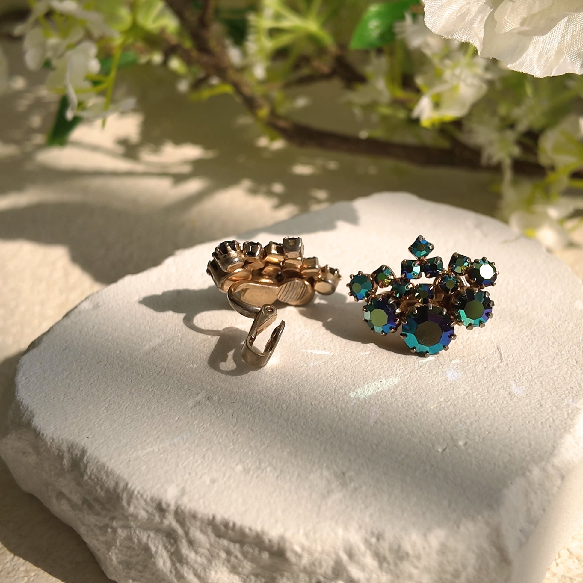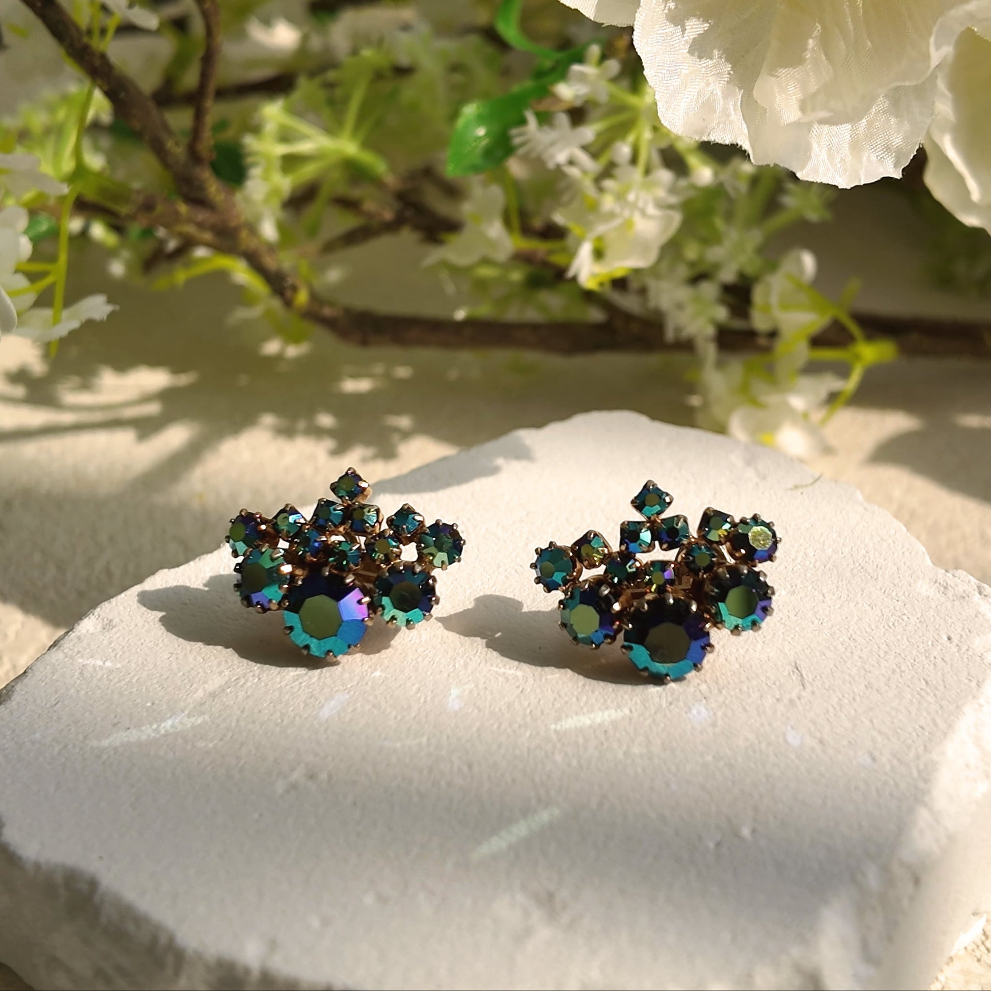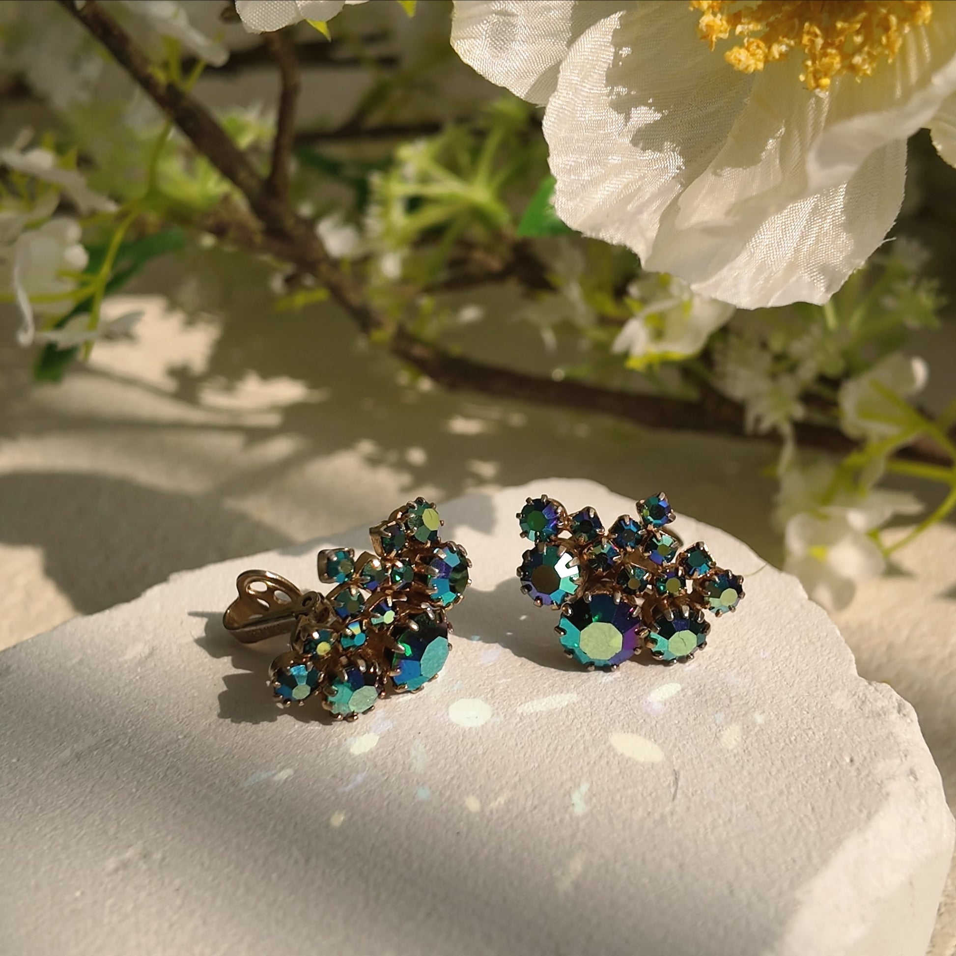 This pair has journeyed through time and has the stories to prove it. It is not pristine. The gold-tone setting has faded, the back shows its age, and a few of the crystals carry small, honest scars. But its soul—that breathtaking, iridescent glow—remains as potent and magical as ever. It is a piece for the Y2K-loving, stargazing dreamer who knows that the most beautiful things in the universe are rarely perfect.