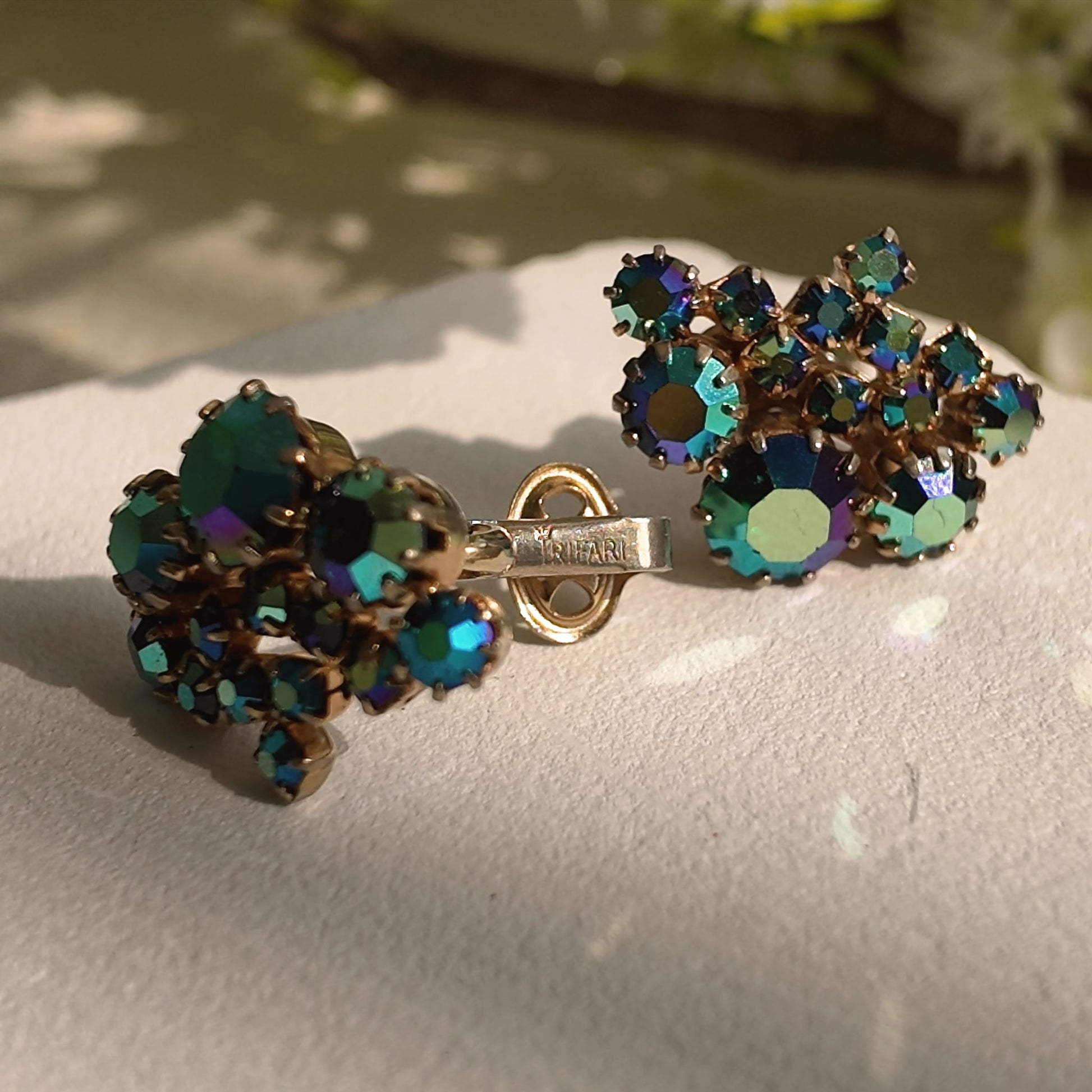 Step inside a secret crystal cave. This is a truly magical pair of vintage earrings from the masters at Trifari, designed for the woman who finds beauty in the wild and the untamed.